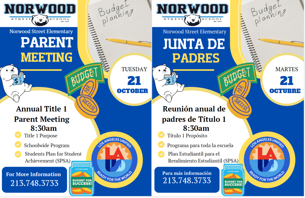 Annual Title I Parent Meeting/Reunión anual de Título I para los padres